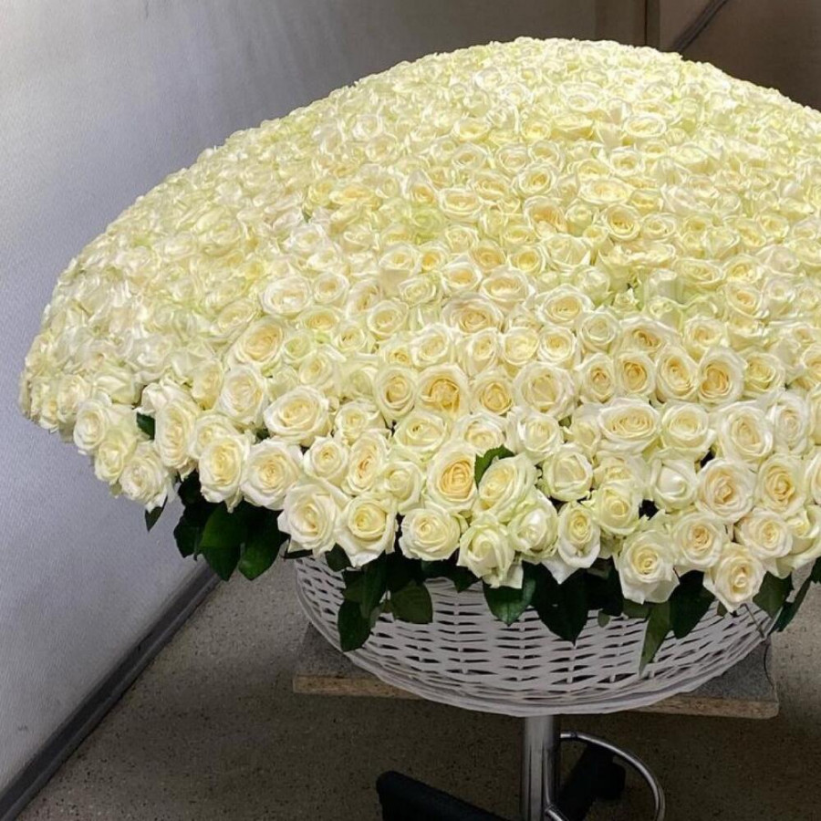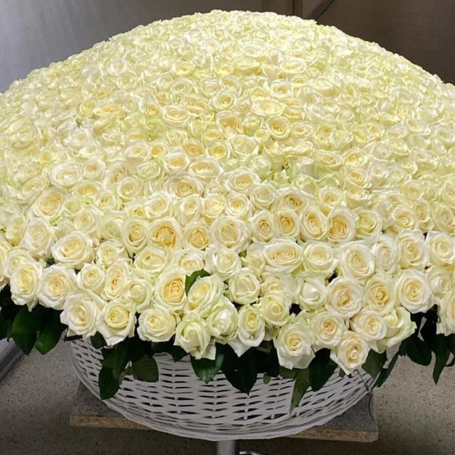 1001 белая роза в корзине «Чистота»