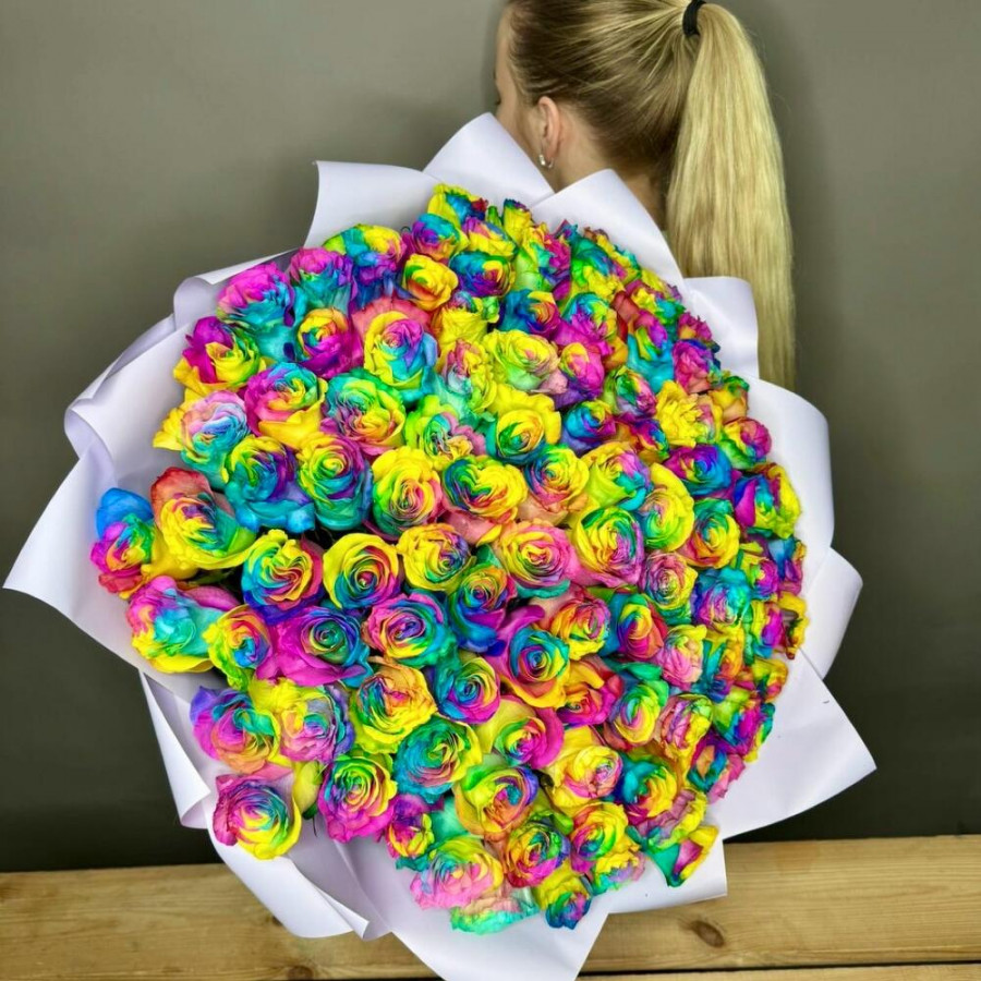 Букет из 101 радужной розы