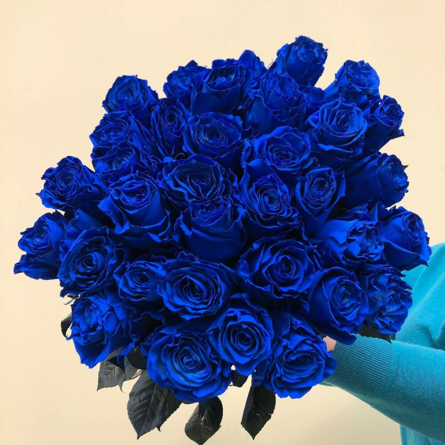 Монобукет из 31 синей розы «Ультрамарин» фото 4
