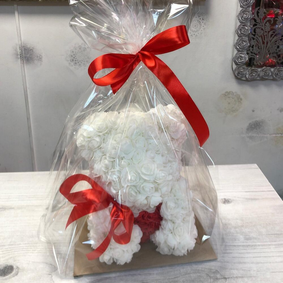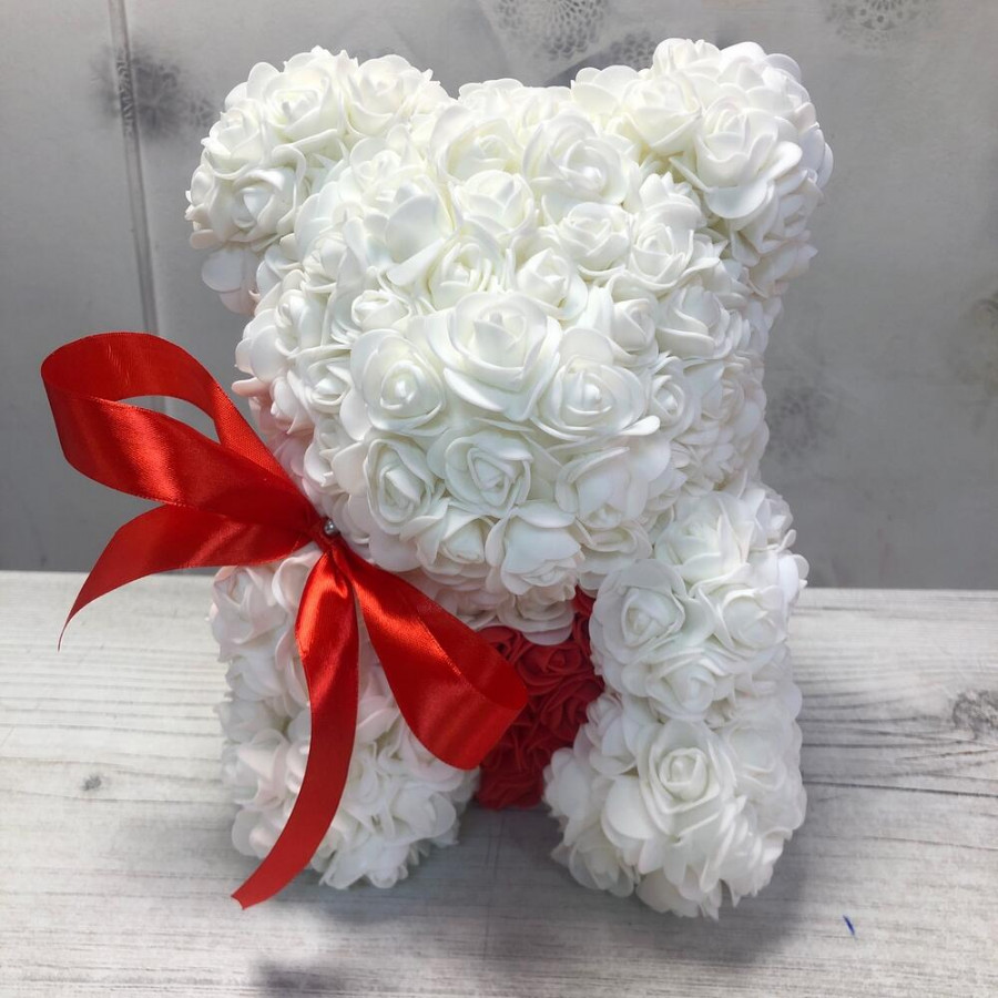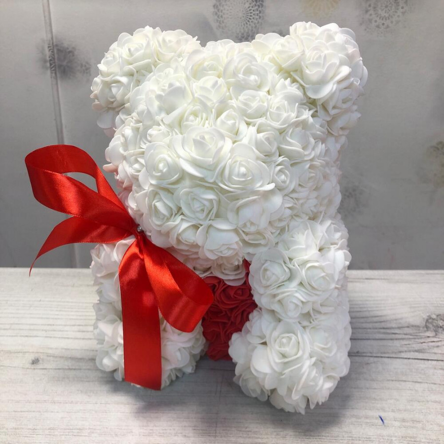 Мишка из роз белый
