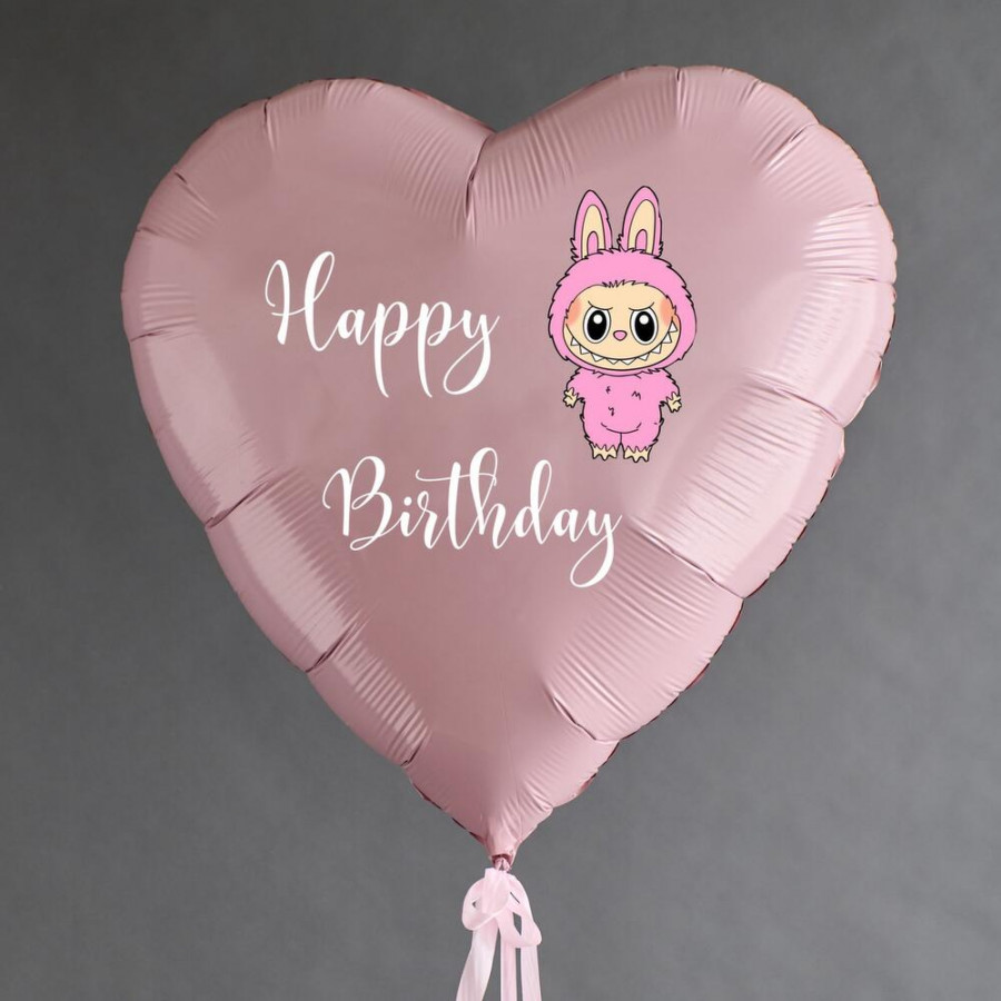 На фото шар сердце лабубу розовый. В составе: . Все цветы свежие и ароматные, букет красиво оформлен и отлично подходит для подарка. Доступна доставка цветов или самовывоз.